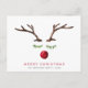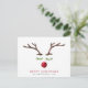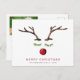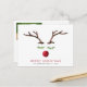 Une carte postale moderne unique avec une aquarelle abstraite d'un visage de renne composé de bois, de feuilles verts pour les cils et d'une baie rouge pour le nez. Vous pouvez personnaliser l'accueil "Joyeux Noël" et votre nom de famille et année en simple typographie. Au verso, ajoutez une photo et un message de vacances personnalisé.