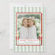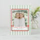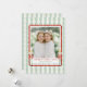 Aquarelle Casse-noisette Souhaits Carte à plat de Noël Envoyez une joie de vacances avec un charme intemporel dans notre Aquarelle Casse-noisette Souhaite carte photo de Noël. Cette carte à plat présente une bordure festive de rayures verticales vert menthe pâle ornées de feuilles et de sucres de canne saints peints à la main. Deux soldats de casse-noix royaux en riches uniformes rouges et verts gardent la garde aux coins inférieurs, apportant une touche de tradition de vacances classique. Un cadre rouge à coquilles noires met en évidence votre photo de famille préférée, tandis que l'arrière - plan à la pâte feuilletée garde l'accent sur vos visages souriants. "Joyeux Noël" est élégamment imprimé en rouge festif, suivi de votre nom de famille et de votre accueil dans un script vert coordonné pour une touche harmonieuse et personnalisée. Parfait pour envoyer des mails à des amis et à la famille, ce design allie l’élégance vintage des vacances à l’art de l’aquarelle fantaisie, ce qui en fait un souvenir qu’ils chérissent année après année. Caractéristiques : - Conception de carte plat avec impression recto verso en couleur - Casse-noix Festive, sainte et bordure sucre de canne - Cadre à échalotes en gras pour votre photo de vacances en vedette - Texte personnalisable pour les salutations et les noms de famille - Parfait pour envoyer des voeux de Noël sincères