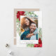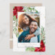 Le design de la carte de Noël des fêtes à thème est orné d'une aquarelle peinte à la main et de jolies poinsettias rouge aquarelle. Votre image est encadrée simplement et le design est accentué de mouchoirs d'or aquarelle et de baies sèches assorties. #Noël #Fêtes #Cartes de Noël