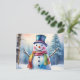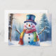 Cartes Pour Fêtes Annuelles Aquarelle Noël Snowman en forêt d'hiver