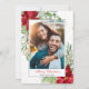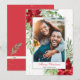 Le design de la carte de vacances de Noël des fêtes est orné d'une aquarelle peinte à la main et de jolies poinsettias rouge aquarelle. Votre image est encadrée simplement et le design est accentué de mouchoirs d'or aquarelle et de baies sèches assorties. #Noël #Fêtes #Cartes de Noël