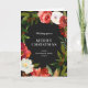 Envoyez la joie des vacances avec cette carte de Noël non photo pliée avec une couronne florale aquarelle peinte avec verdure, fleurs saintes et rouges et blanches sur un arrière - plan noir. L'intérieur de la couronne est personnalisé avec l'accueil de votre choix et nom de famille. L'intérieur de la carte contient votre message personnalisé. Un choix élégant si vous préférez une carte de Noël personnalisée sans photos.