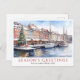 Watercolor Christmas Market at Nyhavn Harbour, Copenhagen, Danemark Travel Christmas Holiday Postcard.