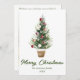 Si vous cherchez une carte de Noël simple minimaliste, belle et facile à modifier. Celui-ci est parfait pour vous. Et comme vous voyez le design présente une aquarelle faite main et dessinée arbre de Noël avec des ornements décorés en rouge, or et blanc. Avec la typographie verte de MERRY CHRISTMAS. Et votre nom de famille et l'année sous lui. Avec un accueil de Noël personnalisable sur le dos et une photo personnalisable.