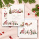 Célébrez la saison des Fêtes avec cette carte de Noël à l'aquarelle peinte à la main, avec une scène de village nostalgique remplie de maisons charmantes, de pins festifs et d'un joyeux Père Noël. Des rouges, des roses et des verts doux, associés à des touches dorées délicates, créent une esthétique de vacances chaleureuse et intemporelle qui capte la magie de Noël. Imprimée sur des cartons haut de gamme et de haute qualité, avec une finition lisse, cette carte offre une sensation de luxe parfaite pour envoyer des voeux chaleureux de Noël et de Nouvel An. Le design élégant comprend un accueil et un espace personnalisables à personnaliser avec les noms de votre famille, ce qui en fait un endroit bien pensé pour vos proches. Complète avec une enveloppe correspondante, cette carte est idéale pour donner ou envoyer par la poste à des amis et à la famille qui apprécient le charme de Noël classique d'inspiration vintage avec une touche artistique. Faites ressortir vos voeux de vacances avec cette belle carte d'aquarelle conçue pour répandre joie et chaleur tout au long de la saison festive.