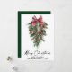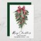 Élégante Calligraphie moderne Encre Script Aquarelle Pins Végétation hivernale avec Bow Rouge Bourgogne Ornements de Noël, cônes de pin et baies sèches Joyeux Carte de Noël - Vert