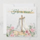 Célébrez le miracle de Pâques cette année avec cette carte Il est ressuscité. Une merveilleuse occasion de renouer avec tous vos amis et votre famille. Une belle peinture à l'aquarelle représentant des roses roses et un feuillage d'eucalyptus. Une croix en bois avec un linceul blanc proclamant Jésus est ressuscité. Des accents de paillettes dorées et roses. Une typographie à l'écriture classique.