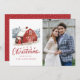 Souhaitez à vos proches un Joyeux Noël avec nos cartes de voeux rustiques Watercolor Red Barn! Les cartes de fin de année festifs arborent une grange rouge peinte à la main, des arbres enneigés dans l'arrière - plan, et "Joyeux Noël" dans un script rouge écrit à la main. Personnalisez l'avant de la carte en ajoutant vos noms et votre photo préférée. La carte de voeux de la grange rouge de vacances revient à un arrière - plan rouge avec un motif blanc de neige.