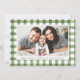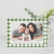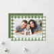 Offrez-vous le charme douillet de la saison avec notre carte Rustique Watercolor Plaid Thanksgiving, un mélange parfait de tradition et de personnalisation. Avec votre photo horizontale encadrée par un motif écossais vert, ce design est votre toile pour créer une carte Thanksgiving vraiment unique. Ajoutez une touche personnelle en customisant l'avant de la carte avec votre propre salutation et nom chaleureux.