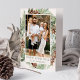 Elégant carte photo de vacances avec une couronne d'aquarelle de cônes de pin, de pics et de verdure luxuriante avec un arrière - plan crème légère. "Joyeux Noël" est affiché en lettres vert foncé. Personnalisez l'avant de la carte de vacances en pin avec votre photo verticale et votre nom de famille. L'intérieur de la carte comporte une photo supplémentaire avec espace pour votre message personnel.