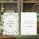 Envoyez une véritable bénédiction irlandaise ! Ce magnifique modèle d'aquarelle représentant des shamrocks, avec de délicats détails en volutes et une élégante écriture verte, est le moyen idéal pour souhaiter à vos amis et à votre famille une joyeuse Saint-Patrick. Comprend un message personnalisable et chaleureux : "Que la chance des Irlandais soit avec vous aujourd'hui et toujours !" et une signature personnalisable au verso.