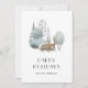 Couleur d'eau personnalisée cartes de fin de année de scène hivernale enneigée avec une forêt d'hiver avec cerf. Personnalisez facilement ces beaux cartes de fin de année de cerfs d'aquarelle avec votre nom de famille et texte.