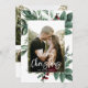 Il s'agit d'une joyeux carte à deux faces de Noël avec typographie script moderne, aquarelle verte & feuillage et photo ovale. Comprend 5 photos au total. Photos de prostooleh / Freepik.