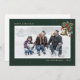 Cartes de Noël couleur vert aquarelle illustrant l'aquarelle de saint, de baies et une cloche de Noël sur un arrière - plan vert foncé orné de confettis en fausse feuille d'or. Personnalisez facilement ces cartes de Noël couleur verte avec votre image et votre texte.