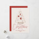 Elégante carte de vacances non photo avec un arbre de Noël en bois aquarelle avec ivoire et des ornements en verre rouge foncé avec un arrière - plan crème moucheté. "Joyeux Noël" s'affiche dans un script rouge foncé et tendance avec votre nom et l'année ci-dessous. La carte inverse pour afficher votre message personnel en blanc sur un arrière - plan rouge foncé.