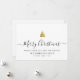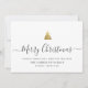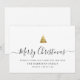 Carte de vacances familiale minimaliste moderne avec calligraphie élégante qui lit Joyeux Noël sous un arbre de Noël doré imprimé. Vous trouverez ci-dessous un espace pour votre message personnalisé ainsi qu'un espace supplémentaire au dos pour des salutations plus détaillées.