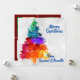 Carte de Noël plate avec un arbre de Noël, peinture éclaboussée et photo - Des blocs de peinture en spray ou des gouttes de peinture de nombreuses couleurs primaires se réunissent pour former un bel arbre de Noël. Le fond est une scène de flocons de neige scintillants. Le texte est entièrement personnalisable - Joyeux Noël et votre nom. Cette carte pourrait facilement dire Vœux de fêtes, Meilleurs vœux de la saison, etc. Le dos de la carte plate a de la place pour que vous puissiez y mettre 4 de vos propres photos.