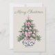 Cette carte de vacances preppy présente un bel arbre de Noël rose et vert dans un pot décoratif de la Chinoiserie. Personnalisez le message à l'avant et à l'arrière avec votre choix de texte spécial.
