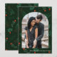 Les baisers de Noël et les voeux de vacances abondent avec cette carte de motif de mistletoe festive et romantique. Remplissez l'arc moderne de votre photo de couple préférée et ajoutez votre message de Noël personnalisé en blanc sur l'arrière - plan vert botanique.