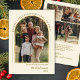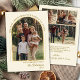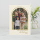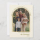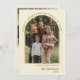 Elégant Arc Or 4 Photo Noël Joyeux Noël Carte de Noël. Célébrez la saison avec élégance grâce à cette carte de Noël familiale et élégante, dotée d'un cadre photo moderne en arc de cercle couleur or. Personnalisez-le avec vos photos de famille préférées, le nom de famille, et l'année sur arrière - plan beige neutre blanc ou crème. Le design minimaliste festif est mis en valeur par une élégante typographie Happy Holidays couleur faux or, créant un look chaleureux et intemporel. Le dos montre 3 collage photo avec bordure dorée et modèle de message de vacances avec des noms de lettres à la main. Une carte de vacances parfaite à partager en famille et entre amis en hiver.