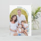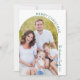 Cette carte photo de Noël offre un design minimaliste avec une photo moderne voûtée. Le design offre du texte vert foncé qui courbe le long du bord de l'image est accentué avec un élégant script manuscrit.