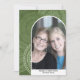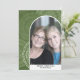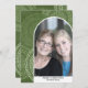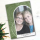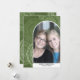 Un carte photo moderne Joyeux Noël dans les tons olives et verts. La photo est une arche mod avec une bordure blanche. Le design moderne comprend des rayures et le type classique pour la partie principale du texte. L'arrière - plan est un design abstrait moderne avec des points et des cercles.