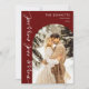 Célébrez votre nouveau voyage ensemble cette saison des Fêtes avec une carte étonnante avec une photo préférée de vous en tant que mariés. Le design moderne en arc rouge crée un décor audacieux et festif, encadrant élégamment votre image tout en transmettant votre message joyeux de "Joyeux & Marié" dans la typographie stylée. Cette esthétique contemporaine met non seulement en valeur votre beau moment, mais ajoute également une touche de chaleur et de joie à vos salutations de vacances. Parfait pour partager en famille et entre amis, cette carte capte l'excitation de votre amour tout en diffusant des réjouissances festives tout au long de la saison.