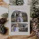 Cette carte de vacances de Noël en arche moderne collage photo collage est la parfaite simple salutation de vacances. Le design bohème crème et or présente une typographie industrielle unique avec style vintage minimaliste. Personnalisez l'avant de la carte avec 3 photos, votre nom de famille et l'année.