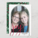 Une grande photo de Noël avec une bordure en arc blanc fait un accueil de vacances moderne et audacieux. Le mot "joie" est un énorme script moderne. Conception du dos Le design du dos comprend un motif botanique de Noël en rouge et vert gais. Les nuances de vert coordonnent avec la fine bordure autour de l'avant de la carte. Photo verticale Utilisez une photo avec le sujet de préférence au milieu ou vers le haut. Une photo plus foncée fonctionne mieux avec cette superposition de type blanc. Faites un accueil unique et tendance Joyeux Noël avec un motif branché et joyeux sur le dos.
