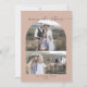Cette arche moderne saumon photo collage famille Noël carte de vacances est le parfait accueil de vacances simple. Le design bohème rose orangé présente une typographie industrielle unique avec style vintage minimaliste. Personnalisez l'avant de la carte avec 3 photos, votre nom de famille et l'année. Ajoutez une photo supplémentaire et une année de revue ou de bulletin familial au verso de la carte.