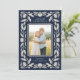 Envoyez à votre famille et à vos amis des voeux de vacances élégants et magnifiques avec cette carte photo de Noël élégante et inspirée de l'art populaire. Il présente un cadre floral dessiné à la main en ivoire sur un arrière - plan bleu marine, ainsi qu'un design intérieur à pétoncles encadrant votre photo. Le dos contient plus de modèles de texte pour une personnalisation plus poussée.