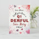 Cette carte de la Saint-Valentin excentrique et ludique présente la phrase spirituelle "Aurez-vous une histoire d'amour Q1nspirée avec moi?" sur le devant, ajoutant une touche d'humour à votre message sincère. Le fond est orné de cœurs aquarelles doux, créant une ambiance douce et romantique. Personnalisez la carte avec le nom de votre bien-aimé pour une touche spéciale et personnalisée, et ajoutez votre propre signature "Avec amour, [Votre nom]" au dos. Parfaite pour les couples qui aiment une touche amusante et astucieuse sur les cartes traditionnelles de la Saint-Valentin.