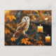Envoyez des salutations d'équinoxe avec cette jolie carte postale de hibou. Il est assis sur des arbres avec toutes les belles couleurs automne et automne, avec des bougies chaudes éclairées. Il a une allure mystique, juste pour Mabon.