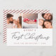Celebrate your baby’s very first Christmas with this modern photo holiday card, featuring a timeless red and white candy cane striped back design and elegant script lettering that reads “First Christmas.”