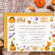 Un petit livre est presque attendu ! Cette jolie invitation à thème Halloween est un excellent choix pour tous ceux qui souhaitent célébrer l'heureux événement de la naissance imminente d'un nouveau bébé pendant la saison Halloween. Il dispose d'un beau cadre de jolies éléments d'Halloween dessinés à la main autour du périmètre de la carte sur un arrière - plan blanc et le texte à l'intérieur. Les noms des parents à être peuvent éventuellement être substitués à un nom. single. Grâce au bouton de personnalisation, vous pourrez remplacer le texte par vos propres informations.