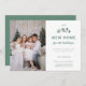 Une carte de Noël de famille change, élégante et classe, simple, avec un modèle pour une photo, avec un petit élément botanique d'hiver : une branche de baies blanches et vertes. Un joli botanique, nous avons déplacé la carte de Noël que vous pouvez personnaliser avec votre(s) nom(s), l'année et une photo de famille (ou photo d'enfants etc.).