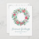 JOYEUSES FÊTES ! Envoyez vos voeux de Noël à votre famille et à vos amis avec cette carte rustique et élégante. Le design comprend une verdure aquarelle, un cône de pin, une fraise rouge et une couronne de poinsettia.