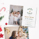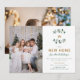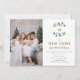 Une carte de Noël familiale élégante et raffinée, simple, pour changement d'adresse avec des modèles pour deux photos, représentant quelques petites branches de baies blanches d'hiver encadrant le monogramme de la famille, avec typographie et calligraphie en vert feuillage de Noël et nuances de doré (pas de véritable feuille d'or). Une belle carte de Noël botanique "nous avons déménagé" que vous pouvez personnaliser avec votre/vos nom(s), l'année et des photos de famille (ou photo d'enfants, etc.). Une annonce de déménagement élégante et stylée.