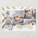 Cette carte de vacances fantaisiste et festive de 6 photos présente un collage de photos, des baies d'hiver et dit "joyeuses fêtes" en faux doré à plat.