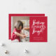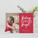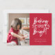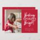 Typographie blanche moderne, "Baking Spirits Bright", carte de vacances photo en rouge festif. Le dos de la carte comporte un motif blanc éclaboussant en arrière - plan rouge assorti.