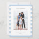 Partagez vos salutations de vacances avec ces cartes photos Hanoukka avec votre ensemble photo préféré sur un arrière - plan de rayures bleu clair et blanc. Une zone de message modifiable vous permet de customiser votre Chanukah ou votre salutation de vacances. Ajoutez votre nom de famille ou vos noms en dessous avec l'année.