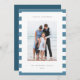 Partagez vos salutations de vacances avec ces cartes photos Hanoukka avec votre ensemble photo préféré sur un arrière - plan de rayures bleu clair et blanc. Une zone de message modifiable vous permet de customiser votre Chanukah ou votre salutation de vacances. Ajoutez votre nom de famille ou vos noms en dessous avec l'année.