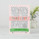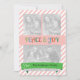 Cette carte de voeux de Noël a un motif rayé rouge clair comme l'arrière - plan à l'avant et à l'arrière. L'avant a de la place pour votre ajouter trois de vos photos de famille et l'arrière comme cadre pour une photo supplémentaire. Le texte sur le devant est PEACE & JOY. Le libellé sur le dos est personnalisable.