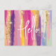 Carte postale au design arrière - plan abstrait. Des rayures vives aux couleurs à la fois audacieuses et pastel. Roses, bleus, violets et couleurs jaunes associés à la parties scintillant brillante en faux or superposé.