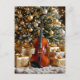 A beautiful Christmas postcard with an illustration of a golden Christmas tree, gifts and a violin. On the back you can add your own personalized custom holiday message.