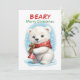 Envoyez une chaleureuse joie de vacances avec cette adorable carte de Noël personnalisée pour bébé ours polaire avec un mignon petit dans un écharpe rouge tenant une cloche festive. Sur le devant, on peut lire "BEARY joyry nosmas", tandis que sur le dos, on trouve un champ de message personnalisable pour vos souhaits de vacances et votre nom de famille. Parfait pour les familles, les enfants et tous ceux qui aiment les cartes de Noël à thème animal avec une touche personnelle.