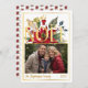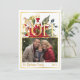 Conception de photo de famille élégante avec poinsettia et texte "Joyeux Noël" avec une simple photo rectangulaire véritable feuille d'or. Conception de vacances de Noël. Le dos présente un motif répétitif de poinsettia. Toutes les zones dorées sont fausses (dégradé doré créé numériquement), à l'exception des modèles de nom et d'année. Ceux-ci sont imprimés en une seule couleur dorée mate. Cette conception est disponible en version imprimée et/ou en téléchargement numérique, mais est également disponible en version imprimée avec véritable feuille d'or dorée via un achat séparé dans notre boutique.