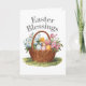 Célébrez la joie de Pâques avec cette élégante carte de voeux d'inspiration vintage, dotée d'une charmante corbeille en osier remplie d'oeufs colorés de Pâques et de fleurs printanières florissantes. Le message sincère, "Bénédictions de Pâques", ajoute une touche de chaleur et de foi, le rendant parfait pour envoyer des voeux de bien à la famille, aux amis et aux proches. il est personnalisable pour en faire le vôtre ! Que vous fêtiez avec des proches ou que vous envoyiez de loin la joie de Pâques, cette carte est un souvenir intemporel pour la saison !