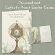 Présentant une belle et traditionnelle salutation religieuse de Pâques vintage avec la Résurrection de Jésus du tombeau à l'intérieur d'une Monstrance dorée antique. Tout le texte peut être modifié.