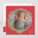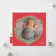 Thème Fêtes verdure de Noël carte photo design avec aquarelle peinte à la main dans une couronne de cercle doré sur un arrière - plan rouge de Noël. Votre image est encadrée simplement et le design est accentué de mouchoirs d'or aquarelle et de baies sèches assorties. #Noël #Fêtes #Cartes de Noël